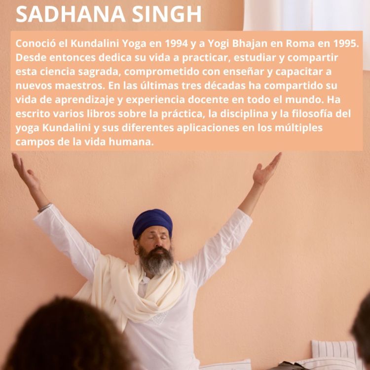 ➡ SADHANA SINGH conoció el Kundalini Yoga en 1994 y a Yogi Bhajan en Roma en 1995. Desde entonces dedica su vida a practicar, estudiar y compartir esta ciencia sagrada, comprometido con enseñar y capacitar a nuevos maestros.
